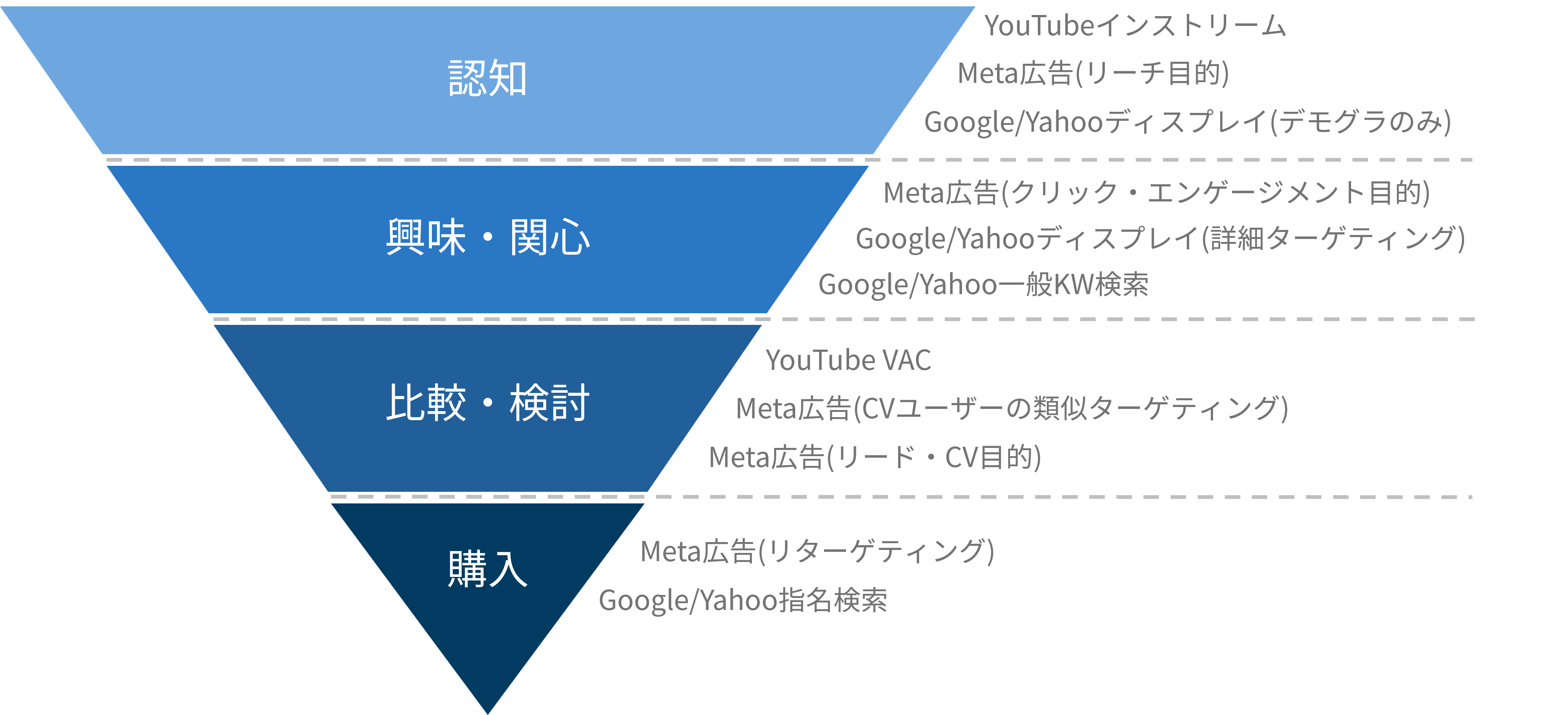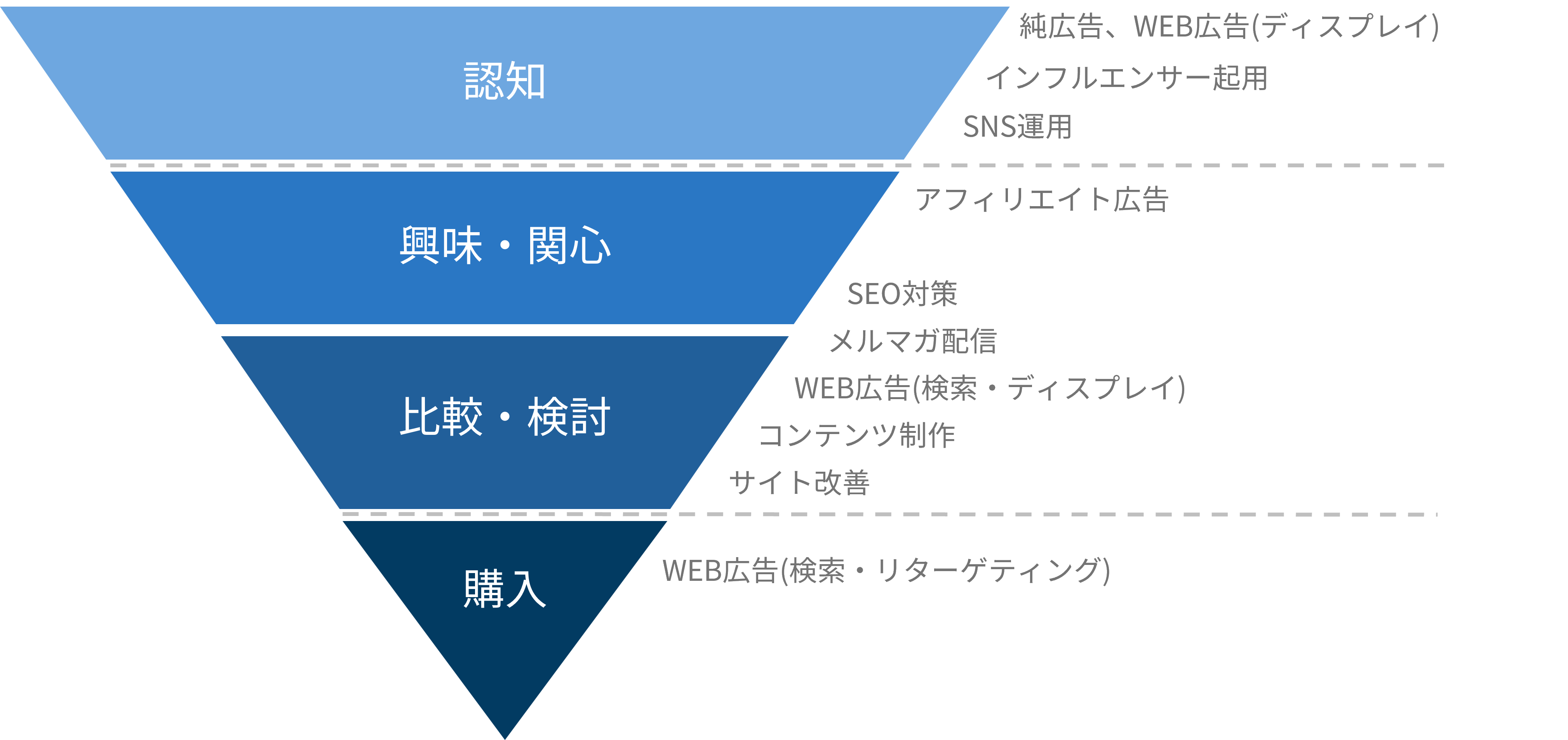 以下は、ファネルのそれぞれの段階に合った施策を示した図です。